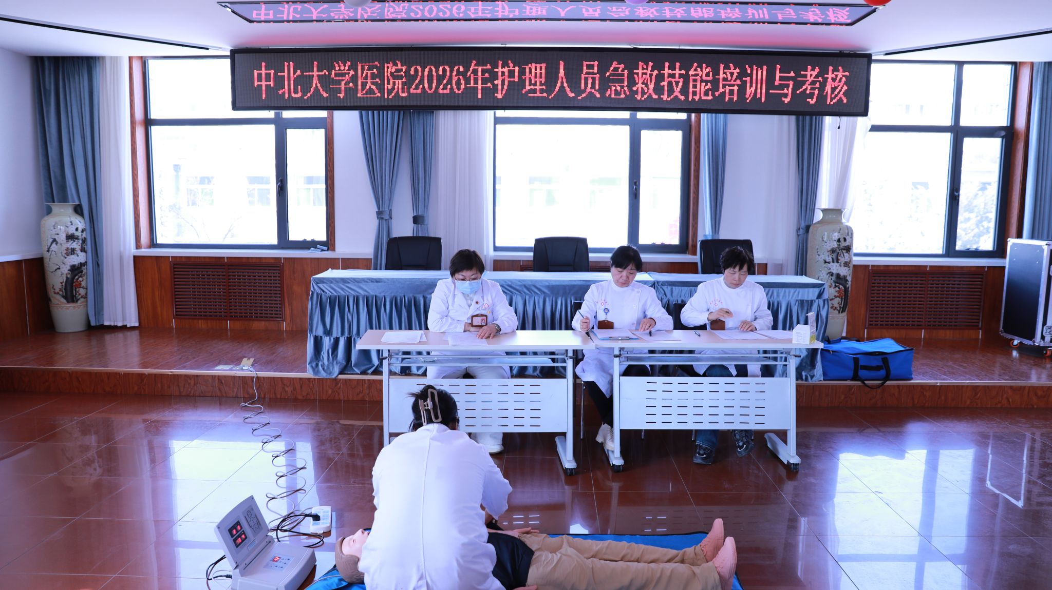 为提升护理队伍急救能力,筑牢校园生命防线,3月20日下午,校医院护理部组织开展2026年度护理人员心肺复苏技能考核,全院护士参加考核。