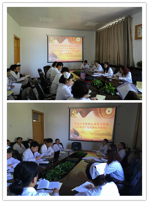 根据校党委的安排部署,9月21日下午,我院组织召开《中共中北大学委员会关于贯彻落实中央八项规定精神的实施细则》和《中国共产党纪律处分条例》专题学习会议,院领导及各科室主任、护士长参加了此次会议,会议由院长吴芳芳主持。