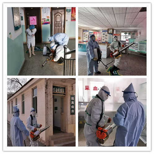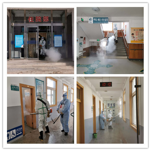 环境消毒工作是一项重要的院感工作,是做好疫情防控工作的第一道防线。按照《医疗机构消毒技术规范》,医务人员对日常工作区域进行每日2次的常规消毒。在新冠肺炎疫情防控的特殊时期,为做好春季学生返校工作进行提前部署、加强院感防控,校医院对全院医疗区域再次进行彻底的、无死角环境消毒。院领导、院感科对此次消毒工作进行了充足的准备。医院疫情防控物资保障组通过多方努力、精心挑选购置了专用电动高压喷雾器,积极支持和配合院感防控组开展全院消毒工作。院感科相关工作人员提前穿戴好护目镜、口罩、帽子、连体防护衣、手套等防护物品,按照标准调配含氯消毒液,对门诊楼大厅、行政办公区、检验科等候区、隔离病房、住院部楼道、手术室、卫生间、供应室、影像科等公共区域的墙面、地面、物体表面等进行了彻底的环境清洁和消毒。