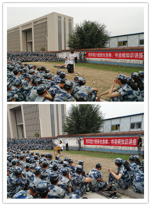 人的生命是宝贵的,意外状况常常令人猝不及防;秋冬时节,各类传染性疾病逐渐呈现高发态势。为了让同学们掌握一定的自救互救知识,为有效预防和控制传染病的发生和传播,让刚刚踏入大学校园的大学生了解掌握更多的疾病预防和保健知识。根据相关工作安排,校医院积极组织开展急救知识技能,结核病、感染性腹泻、新冠肺炎等传染性疾病的健康宣教活动。9月22日,校医院安排医务人员来到理学院新生军训场地,首先由勾虎平主任为同学们培训了急救知识和急救技能,随后由邢丽霞医师为同学们讲解了结核病、水痘、新冠肺炎等传染性疾病的发病特点、传播途径、防治方法。医生告诉同学们,一定要养成良好的卫生习惯,要勤开窗通风,确保室内空气流通,保证充足的睡眠,合理膳食搭配,加强体育锻炼,全面提高身体素质,提高身体抵抗力。 一旦发病或出现意外伤害,一定要在做好现场自救的基础上尽快到校医院进行检查和治疗,主动向所在班级和院系报告病情,不要带病上课。在场的数百名学生和老师认真聆听讲座,并积极参与互动,大家既掌握了知识,又受到了教育和启发。