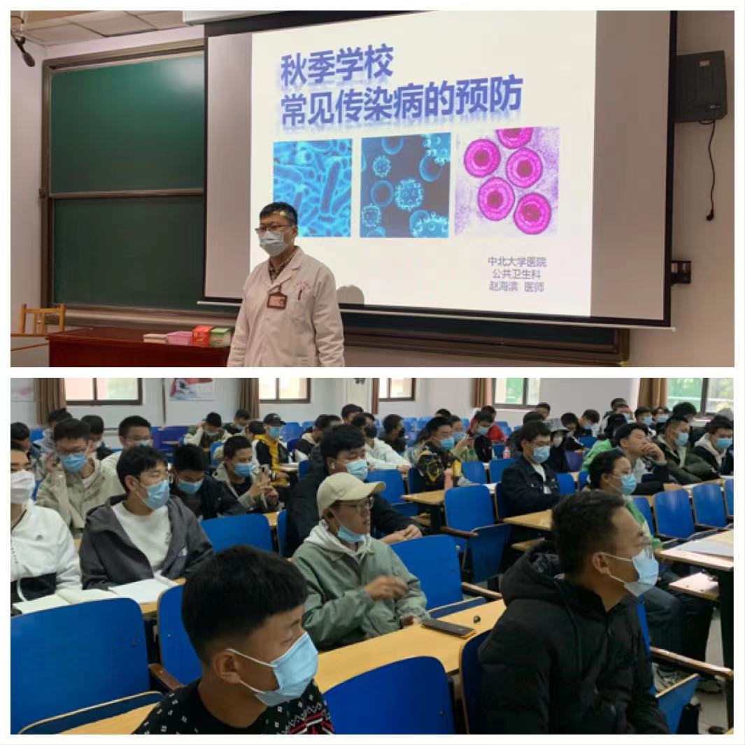 2021年10月19日,校医院在11号教学楼11205H教室为机电工程学院2021级新生开展秋季常见传染病防治健康教育讲座。本次讲座的主讲人是校医院公共卫生科赵海滨医生,内容主要涵盖结核病及水痘的发病、传播、常见症状、预防和治疗等方面。