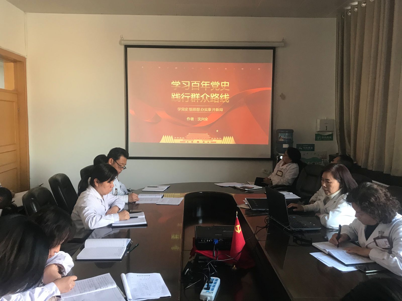12月1日下午,中北大学医院直属党支部在门诊三层会议室集中学习校党委书记沈兴全在山西日报发表的文章——《学习百年党史 践行群众路线》,会议由党支部书记吴芳芳主持,全院党员干部参加会议。