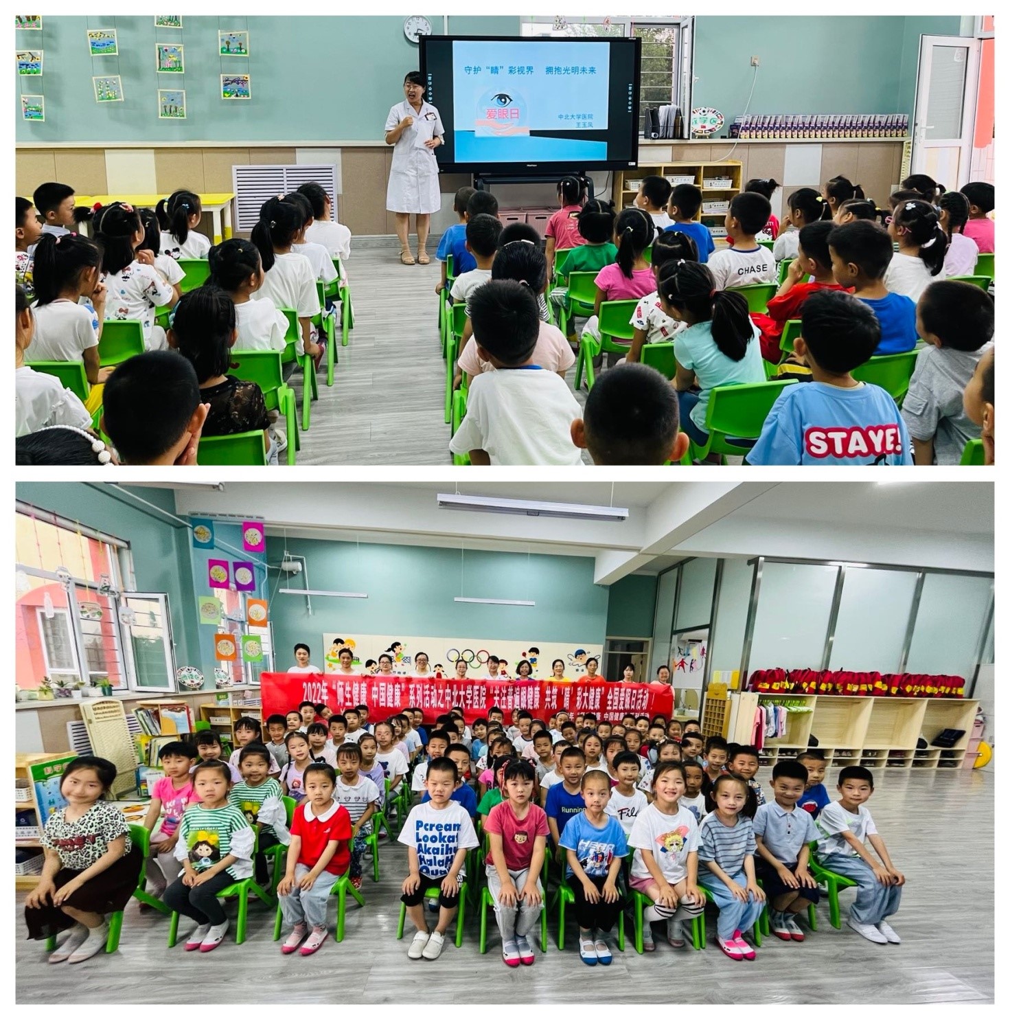 2022年6月6日是第27个全国爱眼日,为贯彻落实省教育厅关于开展2022年“师生健康 中国健康”主题健康教育活动的通知,关注儿童青少年眼卫生,宣传普及眼健康科学知识,校医院组织开展2022年“师生健康,中国健康”主题健康教育活动之6.6全国爱眼日健康教育进附属幼儿园活动。