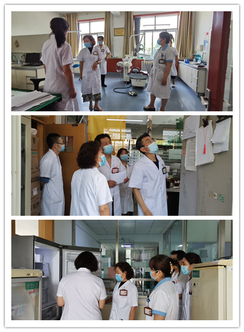 张学娥副院长带领职能科室负责人依次来到检验科、药剂科、急诊科、影像科、公共卫生科、消毒供应室、门诊部、住院部等科室。详细查看了检验试剂、药品、急救设备、疫情防护物品等的科室自查情况和准备情况,重点排查了暑假期间安全隐患重点环节,对可能出现的意外情况或发现的问题一一提出工作要求和改进意见,对假期值班人员的安排以及假期工作注意事项也逐一进行了询问和提出工作要求。