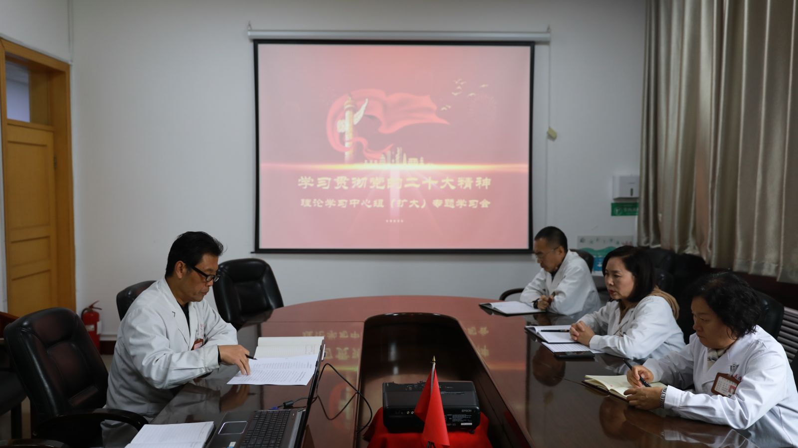 会议强调,要把学习宣传和贯彻党的二十大精神作为当前和今后一个时期的首要政治任务,要深刻领会党的二十大报告中一系列新的重要思想和重大战略。要不断强化全院党员干部和广大医务人员的政治认同、思想认同、理论认同、情感认同,不断掀起学习热潮。要学以致用、知行合一,用习近平新时代中国特色社会主义思想武装头脑,把二十大精神作为推进医院健康发展的强大行动指南,在医疗工作实践中进一步提高政治站位,提升服务质量、改进工作作风。