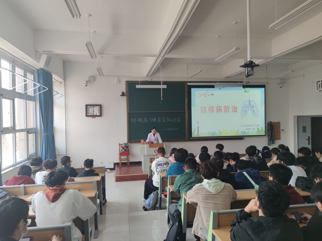为持续做好肺结核等传染病的防治工作,防范校园结核病疫情的发生与传播,校医院于3月26日为环境与安全工程学院2022级学生开展了结核病防治知识的专题讲座,讲座内容主要涵盖肺结核的症状、传播、预防及学校结核病防控等方面,150多名大学生参加听讲。