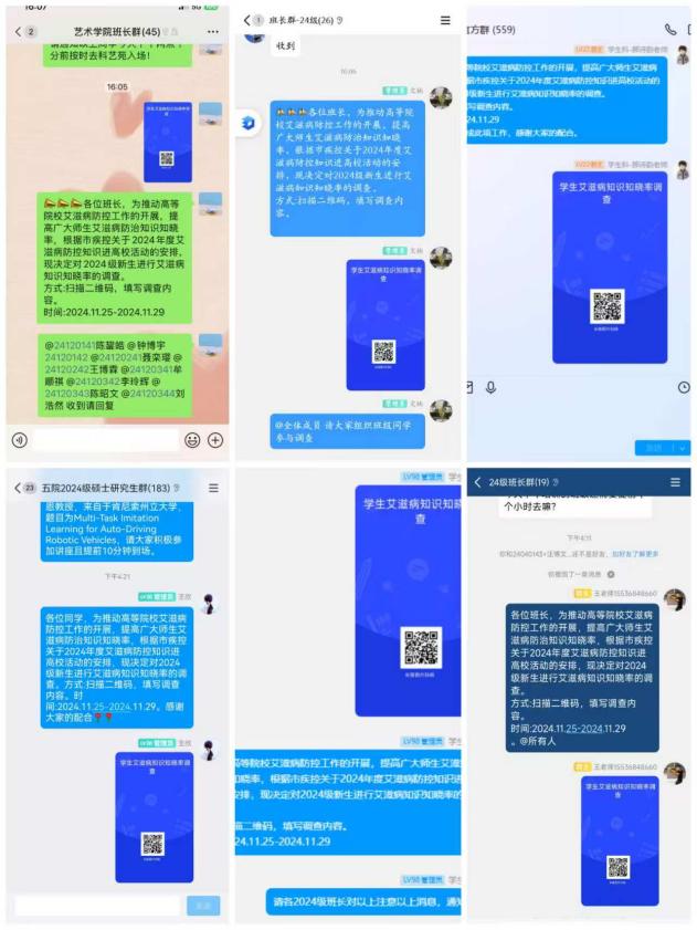 11月25日至30日,通过线上扫码答题的形式,对2024级新生的艾滋病防治知识知晓率进行调查。截止11月30日,2024级新生艾滋病防治知识知晓率达到80%以上。此次调查为深入开展学校预防艾滋病宣传教育活动打下良好基础。