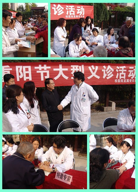 按照校医院“我是党员——我行”主题实践活动安排,校医院直属党支部于2016年10月9日下午,在校老年活动中心开展“九九重阳节”大型义诊活动。医院内科、外科、中医科等临床科室党员同志参加了此次义诊活动。本次义诊还特邀山西省人民医院中医专家张永康主任医师现场坐诊.