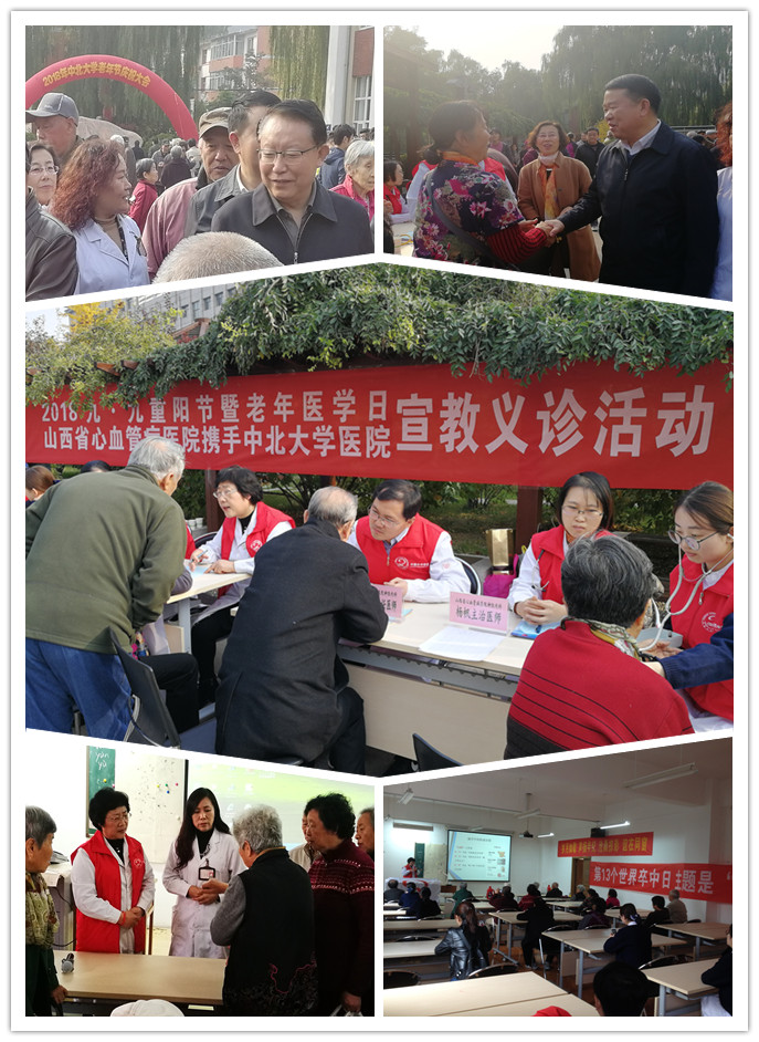 金秋九月,秋高气爽,艳阳高照,为隆重庆祝“九九重阳节”,纪念第十三个世界卒中日,2018年10月17日,校医院特邀山西省心血管病医院神经内科专家团队携手走进“中北大学老年活动中心”,组织开展宣教义诊活动。