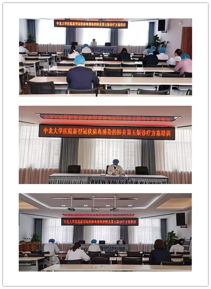 医教科主任张洪明组织大家培训学习了新型冠状病毒感染的肺炎诊疗方案(试行第五版)和太原市发热患者就诊流程(试行第四版)。培训内容主要有流行病学特点、临床特点、诊断标准、疑似和确病例如何鉴别、临床分型、病例的发现和报告、治疗原则、解除隔离的标准等。护理部阎润仙主任组织大家培训学习了《中北大学疫情防控问答》(第一期)。培训要求医务人员一定要熟悉掌握新的诊疗方案和工作流程,准确把握上级卫生行政主管部门和学校当前疫情防控的规定和要求。吴芳芳院长强调要求:医务人员高度重视疫情防控工作,要站在政治的高度和对人民群众生命安全身体健康负责的高度,认真落实各项防控措施和要求,加强自身防护,一切行动服从命令,坚决打赢疫情防控阻击战。