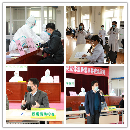 为进一步加强学校应对学生开学后新冠疫情的防控工作, 4月8日上午,在老干部活动中心三层会议室,校医院联合经济与管理学院、机械工程学院等组织开展新冠肺炎疫情防控期间突发体温异常事件应急演练活动。此次演练由校医院吴芳芳院长主持,相关院系负责人参加,校长沈兴全、副校长雷锋斌等校领导,以及各学院负责人观摩演练。