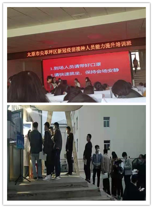 根据山西省疫情防控办及学校要求,我校将进行大规模新冠疫苗接种工作。校医院直属党支部以党史教育为引领,积极响应,立即安排部署相关工作。3月28日校医院选派精干医务人员参加“太原市尖草坪区新冠疫苗接种人员能力提升培训班”, 党员干部发挥先锋模范作用,带头认真学习,确保新冠疫苗接种工作顺利完成。