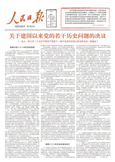 1981年7月1日,《人民日报》刊发《关于建国以来党的若干历史问题的决议》