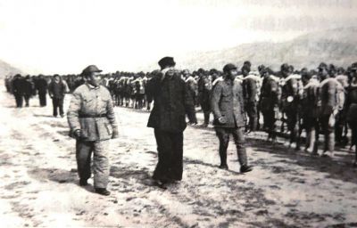 1944年11月,毛泽东和朱德由王震陪同,在延安机场检阅南下支队