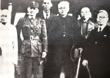 参加国共谈判的中共代表林伯渠(右三)等与国民党代表
