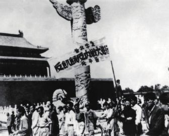 北平学生在天安门前举行反饥饿、反内战大游行