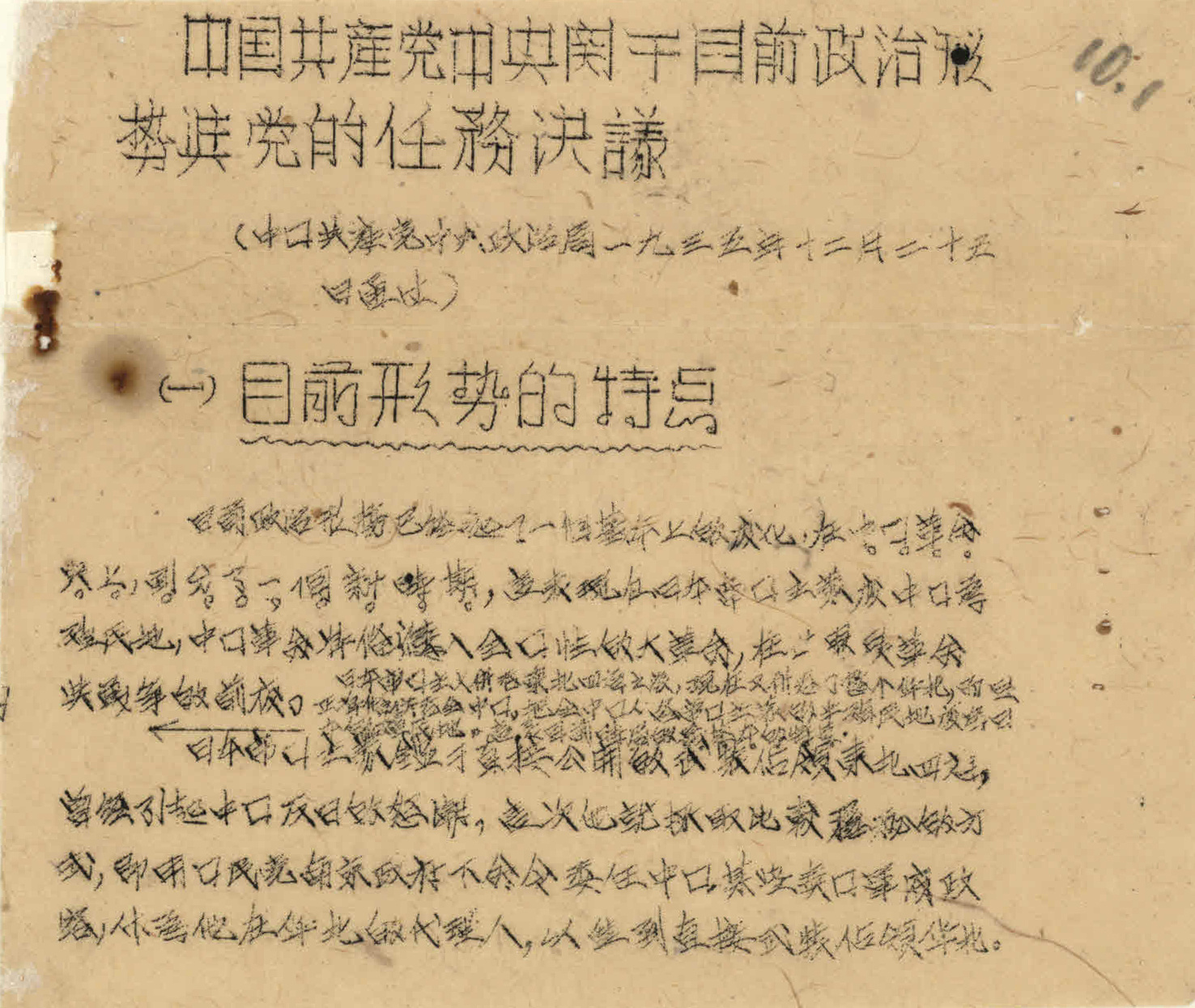 1935年12月25日中共中央政治局会议通过的《关于目前政治形势与党的任务决议》