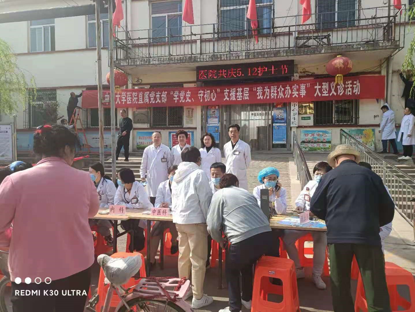 5、5月11日,校医院直属党支部组织开展“学党史、守初心”支援基层“我为群众办实事”大型义诊主题实践活动。