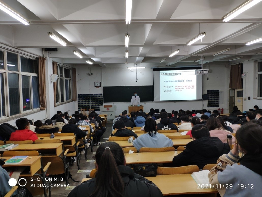 2021年11月29日、30日,校医院在10号教学楼为信息与通信工程学院师生开展水痘等冬季常见传染病防治知识健康教育讲座,内容主要为水痘等呼吸道传染病的发病、症状、传播和预防。
