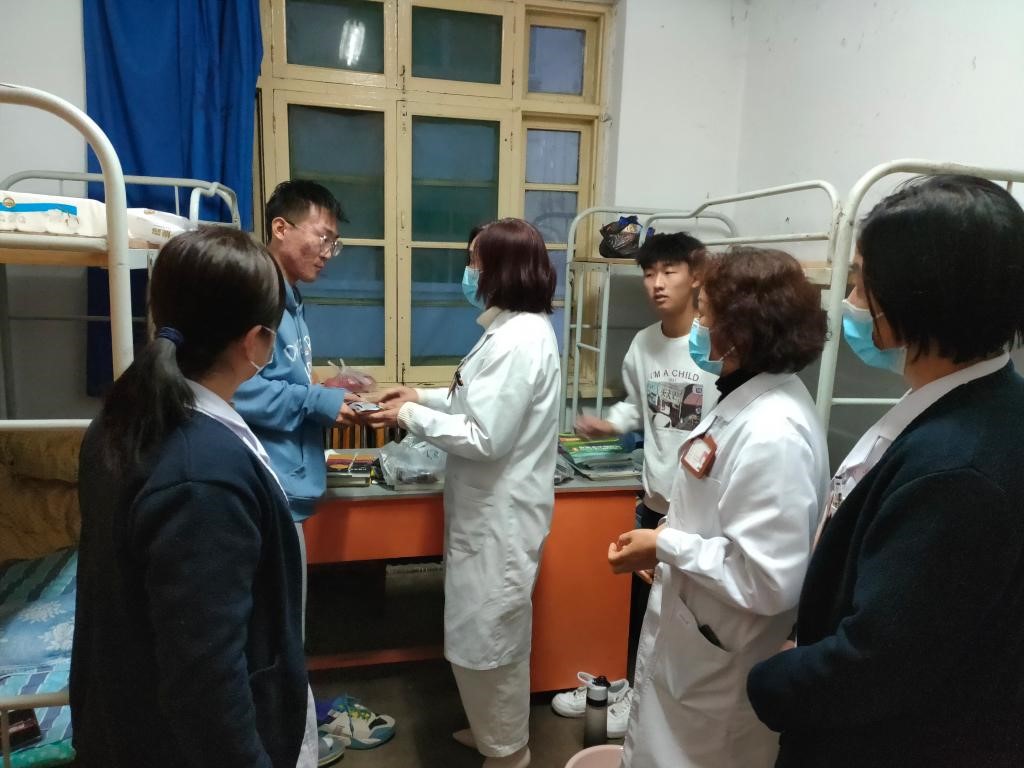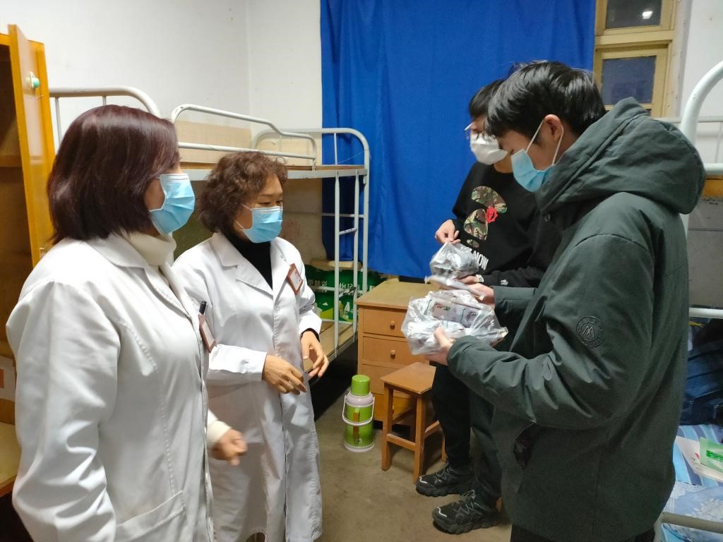 11月30日下午,校医院吴芳芳院长、张学娥副院长带领有关科室负责人来到隔离观察点看望水痘留观学生,亲自为他们送上刚出锅的热乎乎的中药汤剂,嘱咐他们要正确认识水痘疾病,要安心隔离观察,要配合医务人员积极治疗,争取早日康复。